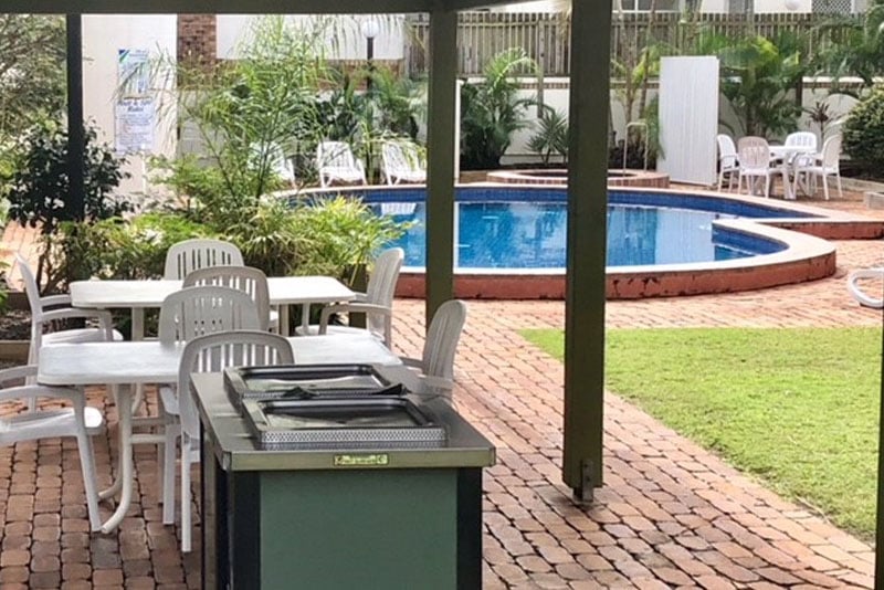 Electric barbeques under an all weather pergola which is set in tropical gardens. Sun lounges, tables and chairs are available for guest enjoyment